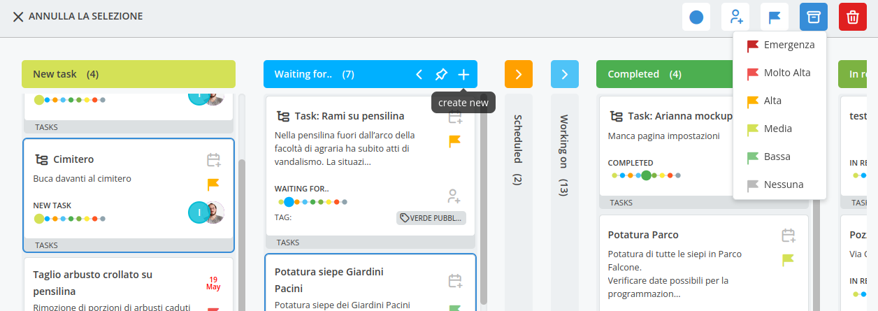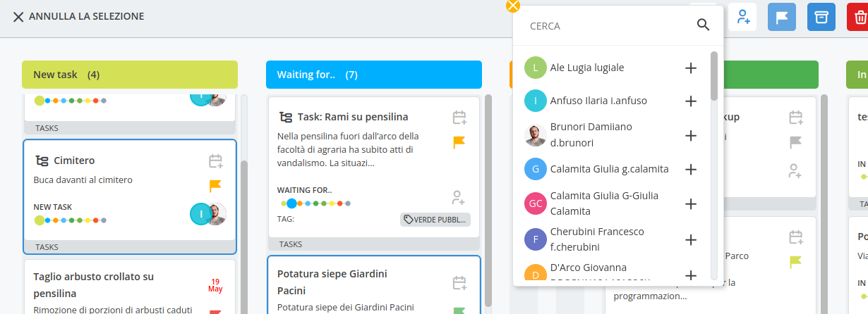 - E' stata aggiunta la funzionalità di selezione multipla per effettuare la stessa operazione su più task/issues.