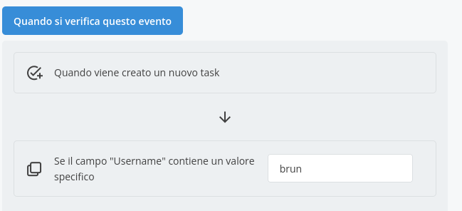 - È stata aggiunta una nuova condizione nelle regole su Task e Issues nel caso di evento di creazione, questa permette di filtrare sul nome utente di chi ha creato il Task/Issue:
