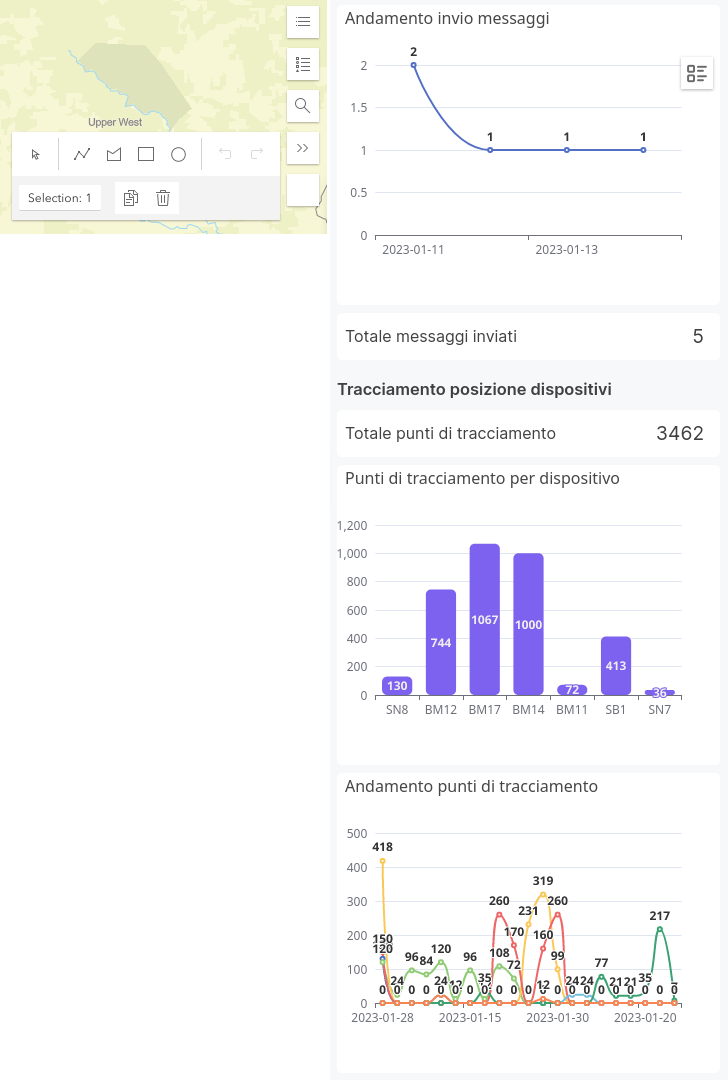 È stato riattivato il widget per la selezione dei dati in mappa e aggiunti dei grafici per mostrarne le statitstiche: