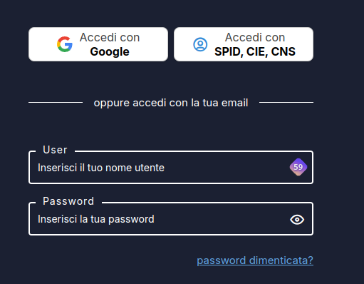 La pagina di login si adatterà alla configurazione del workspace e mostrerà di conseguenza i metodi abilitati (email, providers o spid).