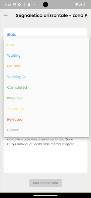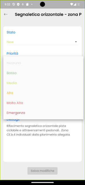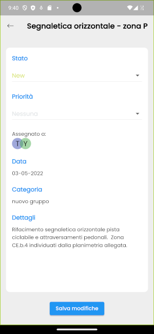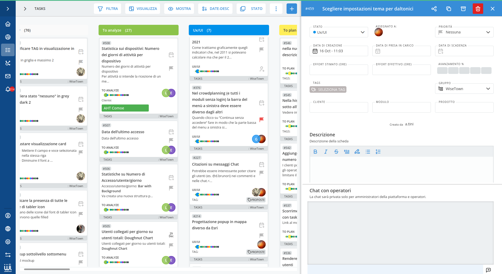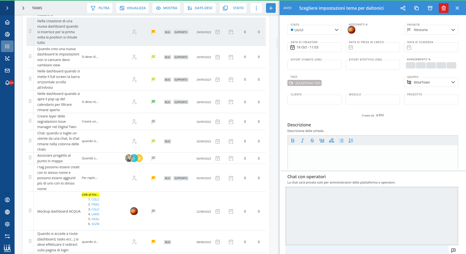 - Dopo aver eseguito l'accesso ed aver scelto il ruolo operatore è possibile modificare alcune proprietà del task/issue (stato, priorità e assegnazione utente).