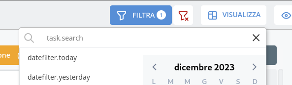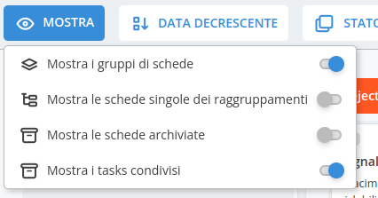 - E' stato aggiunto il filtro "Mostra i task condivisi" nella sezione "Mostra", attivo di default, che consente di vedere o nascondere i task che non sono appartenti al gruppo selezionato ma che sono "condivisi con il gruppo selezionato"
