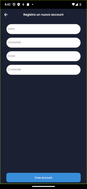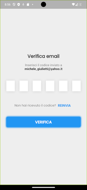- Dopo aver effettuato la registrazione con username, bisogna inserire il codice ricevuto tramite email.
