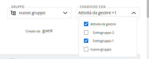 All'interno della modale di modifica del TASK si trova di fianco al Gruppo principale a cui il task è associato una nuova combo in cui si possono selezionare uno o più gruppi con i quali vogliamo condividere il task.